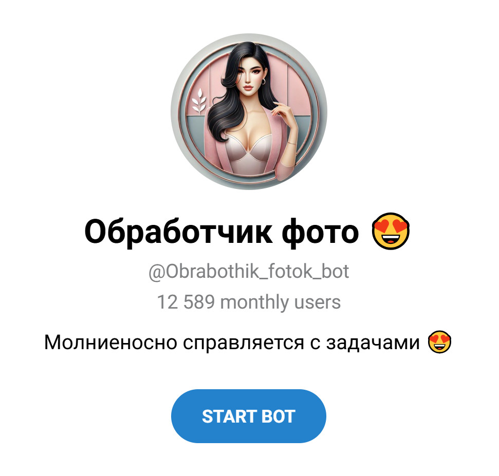Кому подходит: пользователям, которым нужен быстрый и простой бот для экспериментов с изображениями в Telegram.