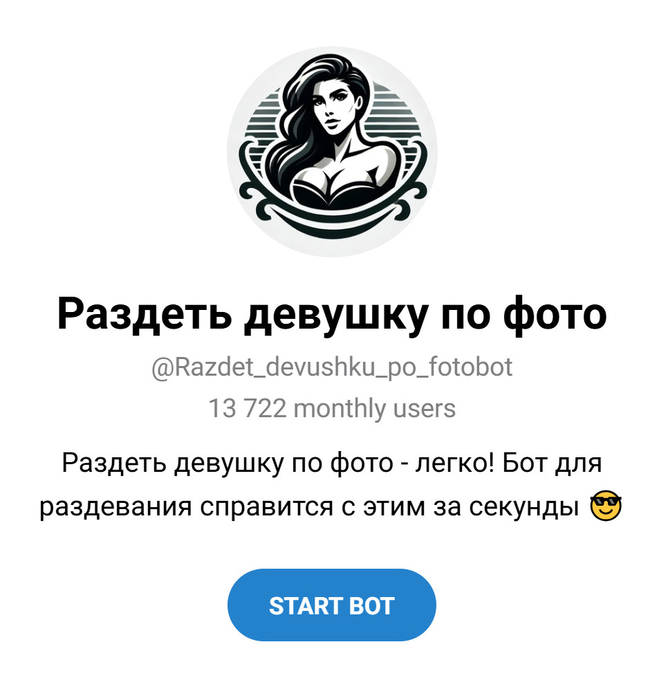 Telegram‑бот, специализирующийся на получении «обнажённых» версий снимков с минимальными артефактами. Поддерживает групповые фото и оптимизирован для мобильного трафика.